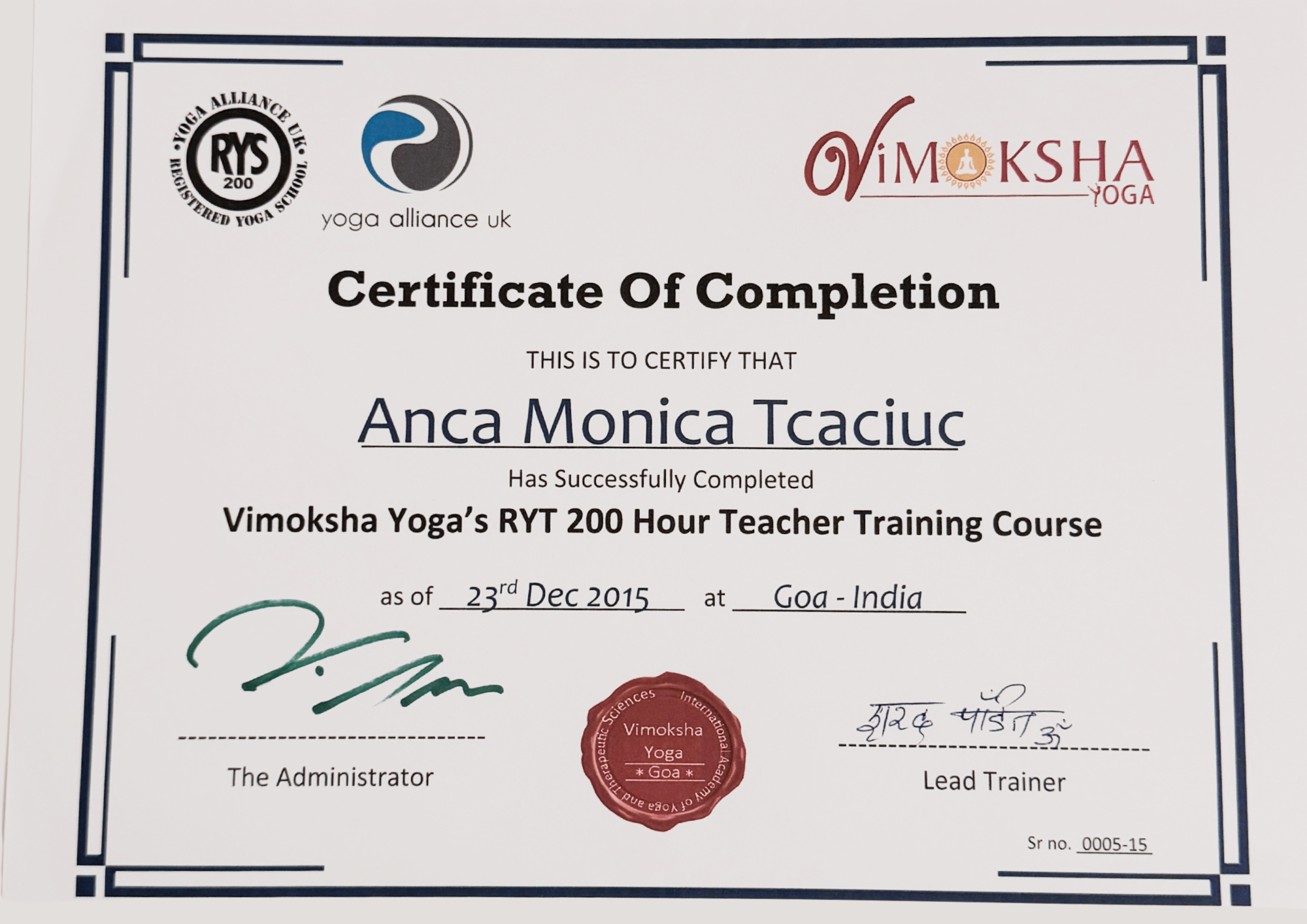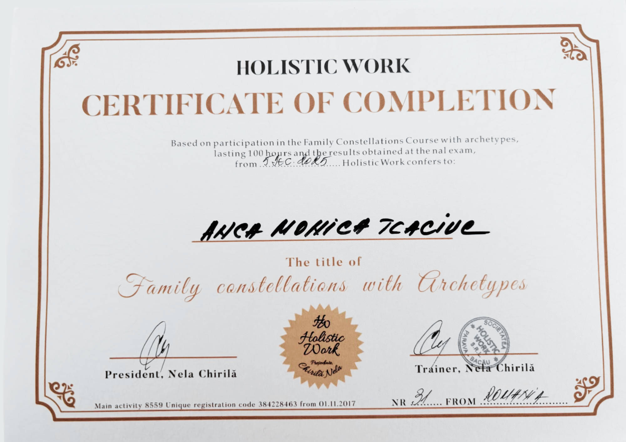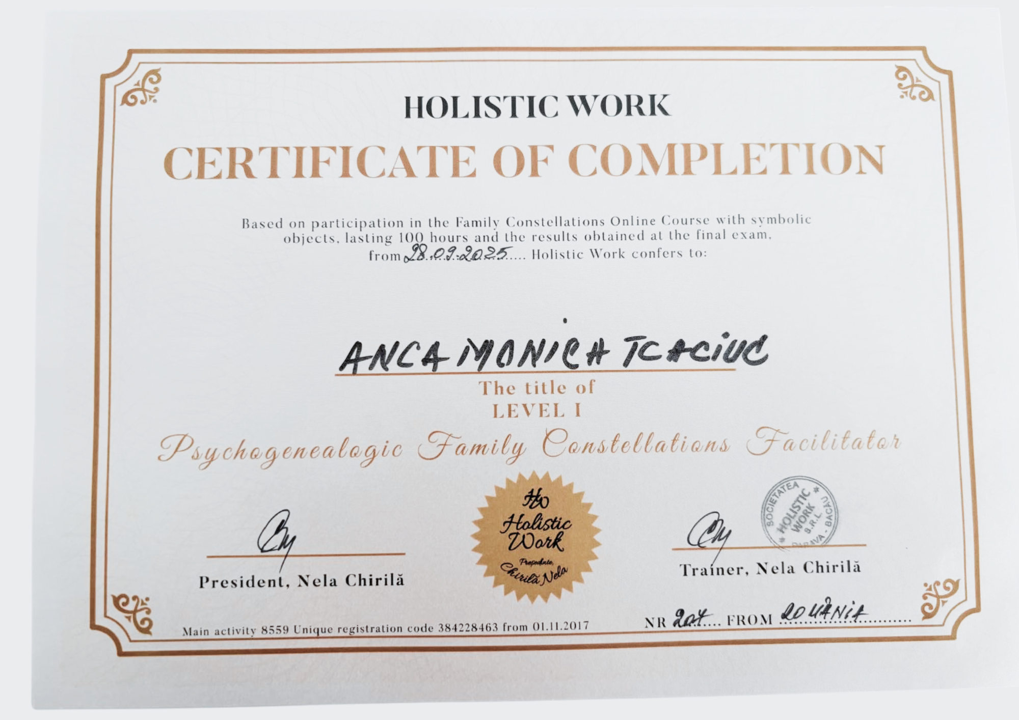 Anca Monica’s Certifications