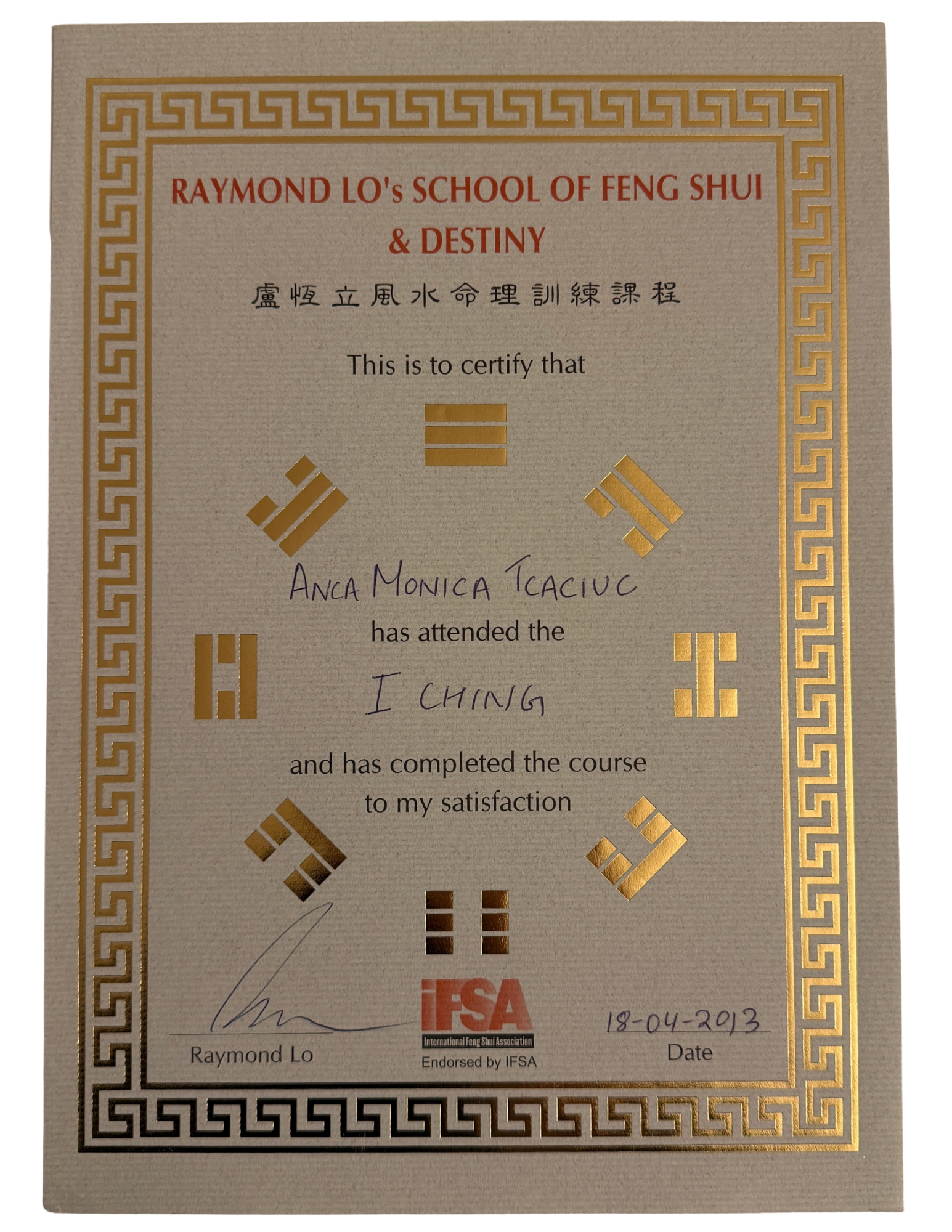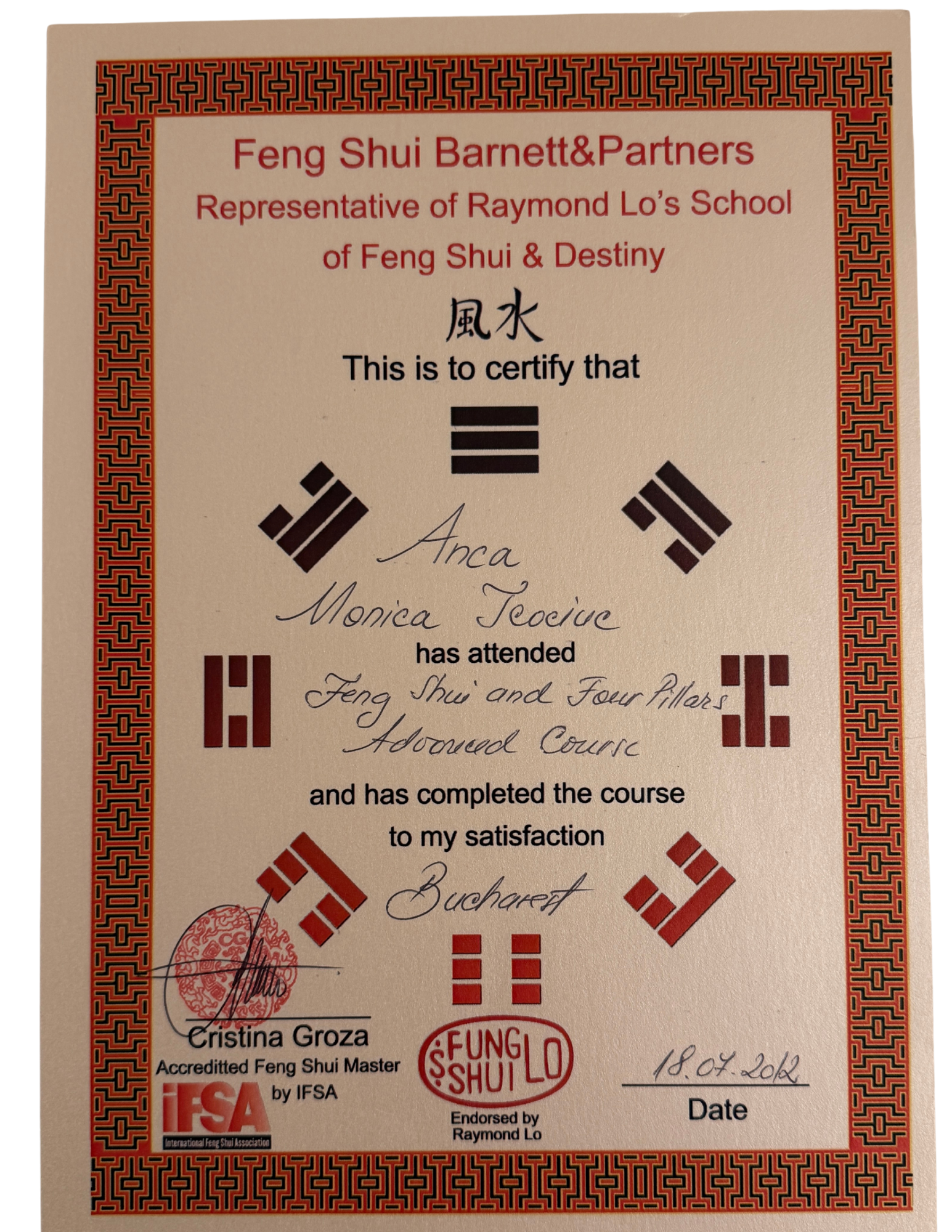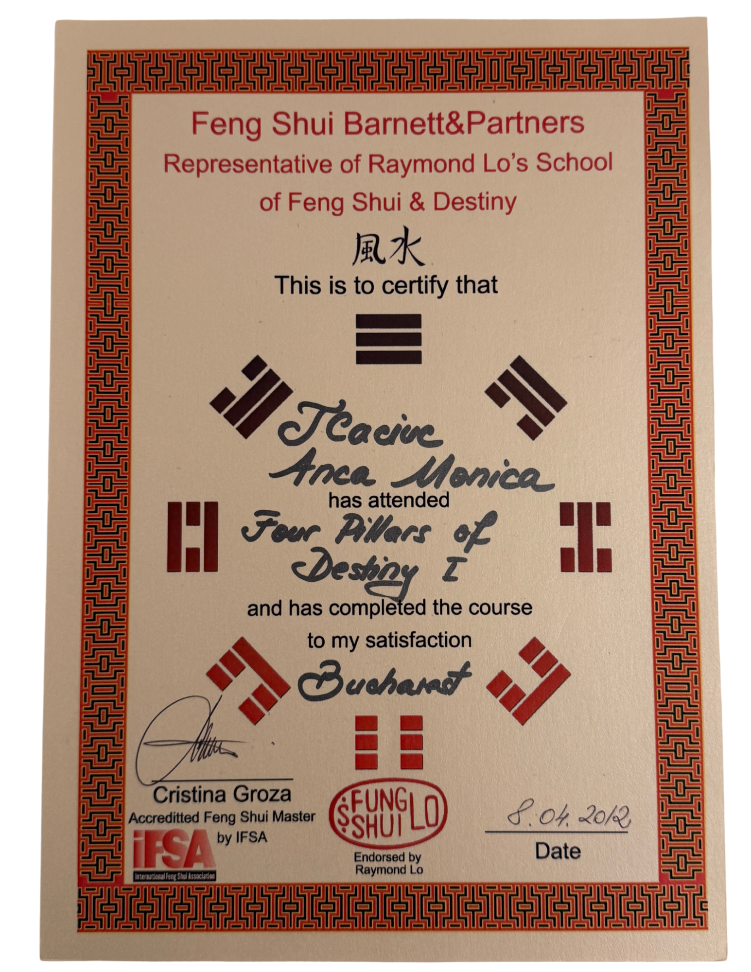 Feng Shui & BaZi (4 Pillars of destiny)  Certifications